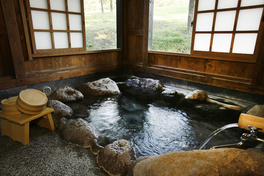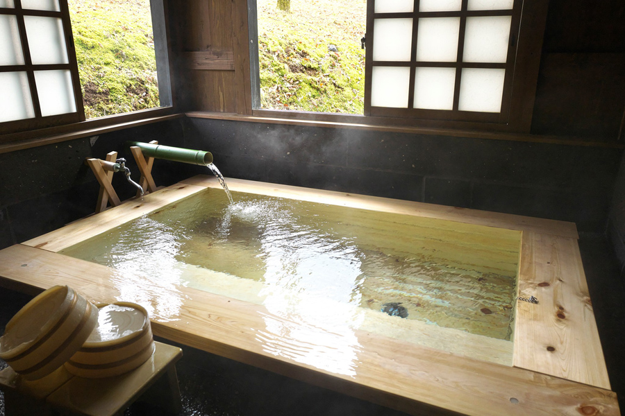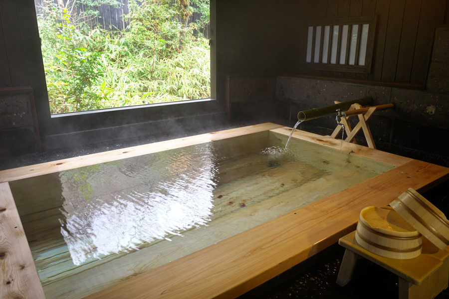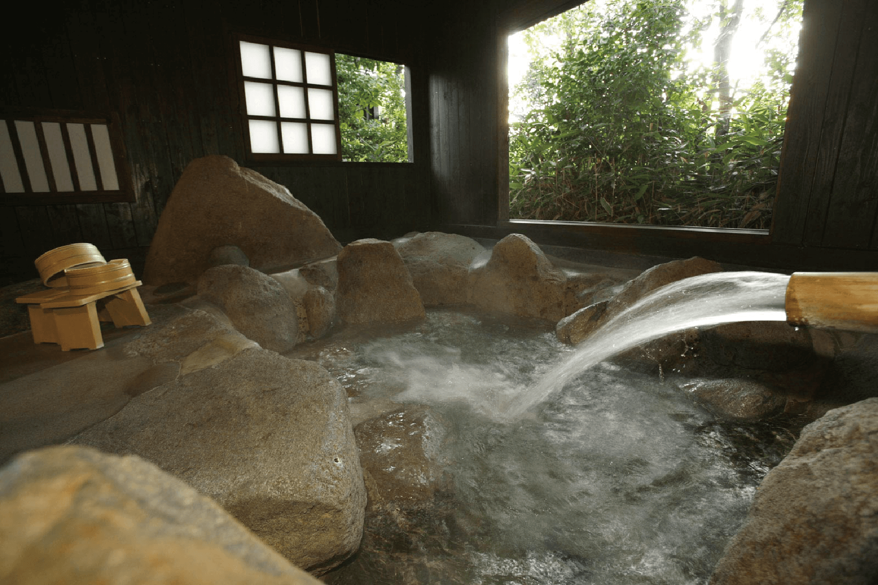 裕花の貸切温泉は、 切り石、岩、ひのき、桶の4種からお選びいただける 貸切天然温泉です。 コインを入れると新しいお湯が注がれる、 衛生的な都度入れ替え式。 お客様毎に温泉を入れ替えますので、 いつでも一番風呂をお楽しみいただけます。 旅程に合わせてお好きな時間にご利用ください。