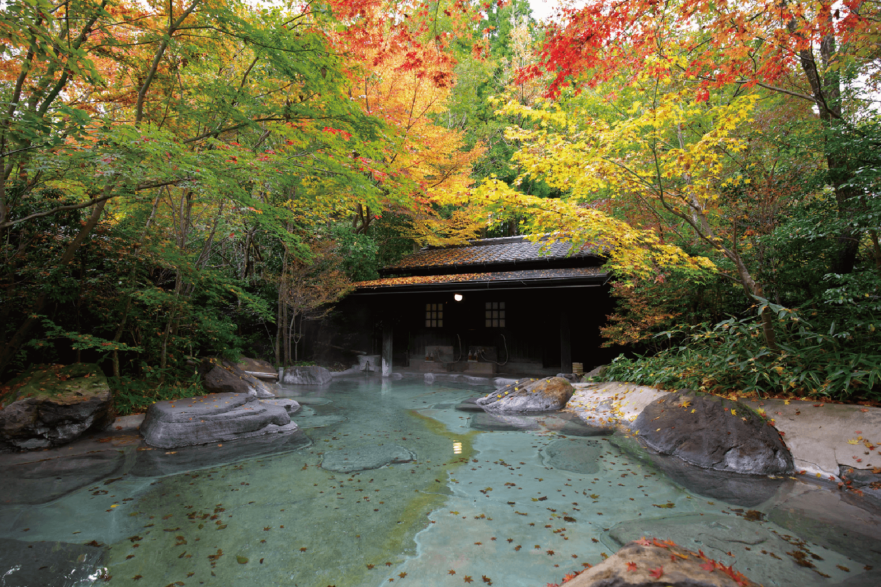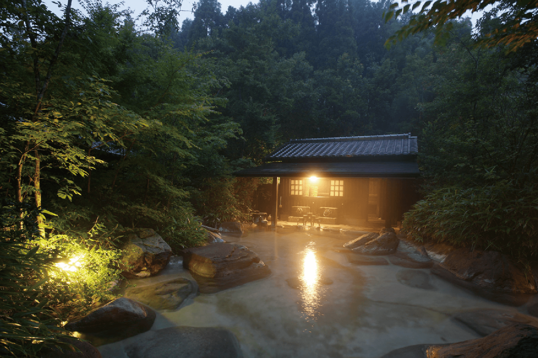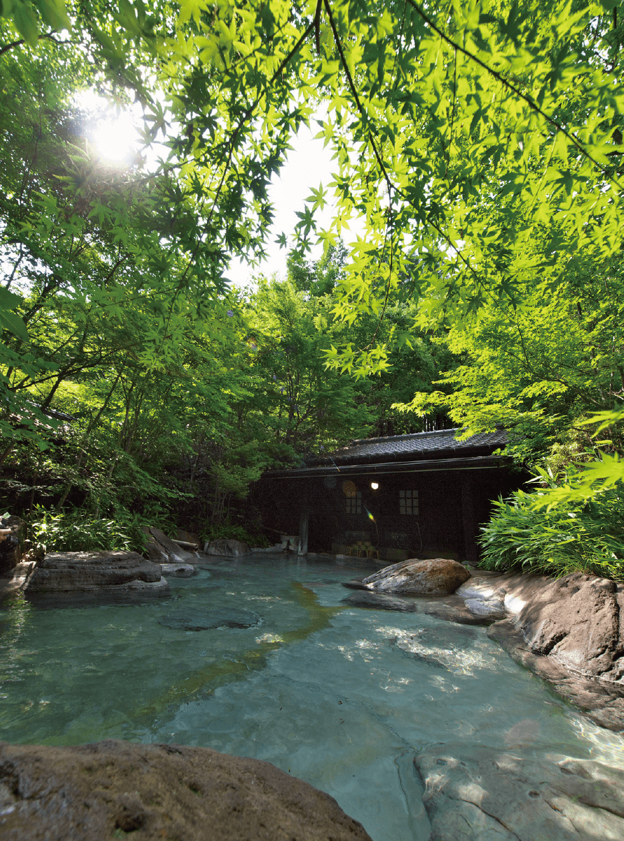 衛生上の理由で貸切温泉はもちろん露天風呂も毎日温泉を入れ替えるため透明です。