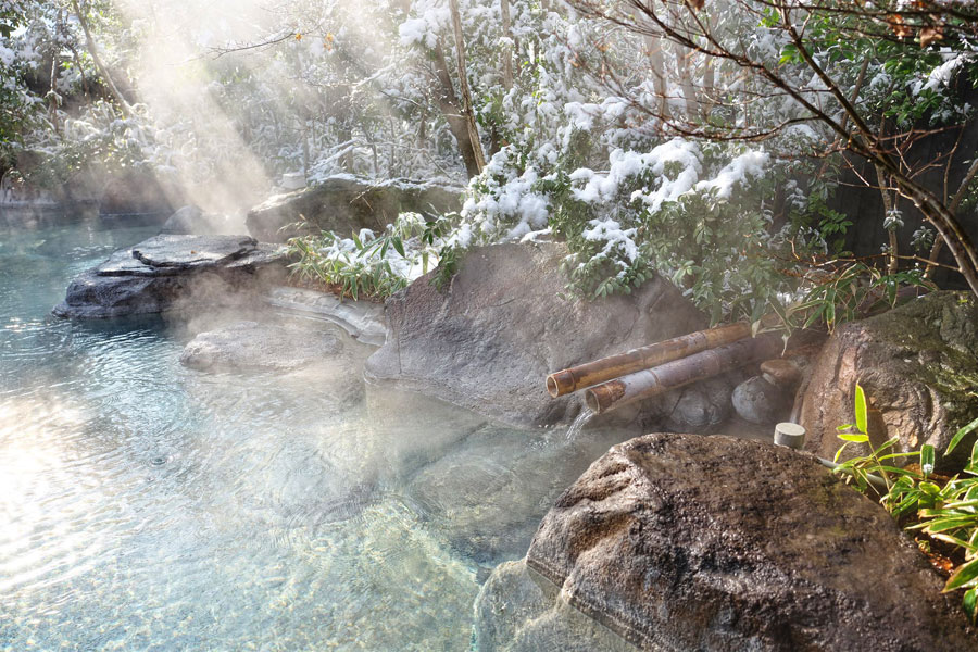裕花の露天風呂は、毎分400ℓ以上湧出するナトリウム-塩化物泉です。